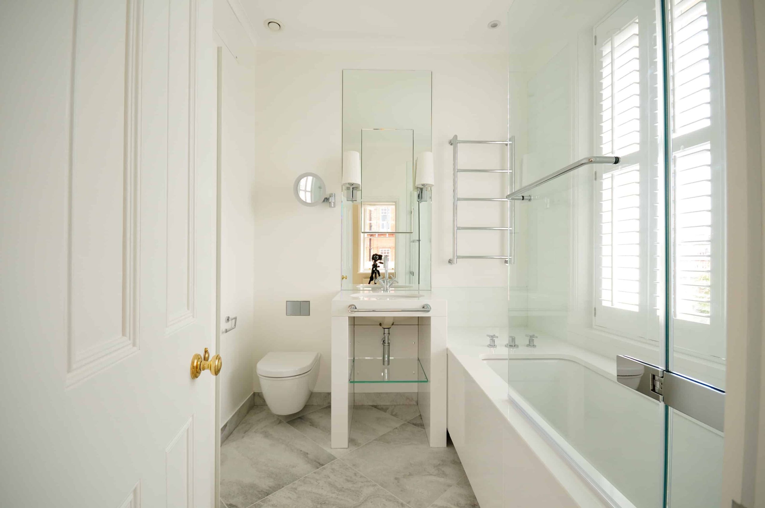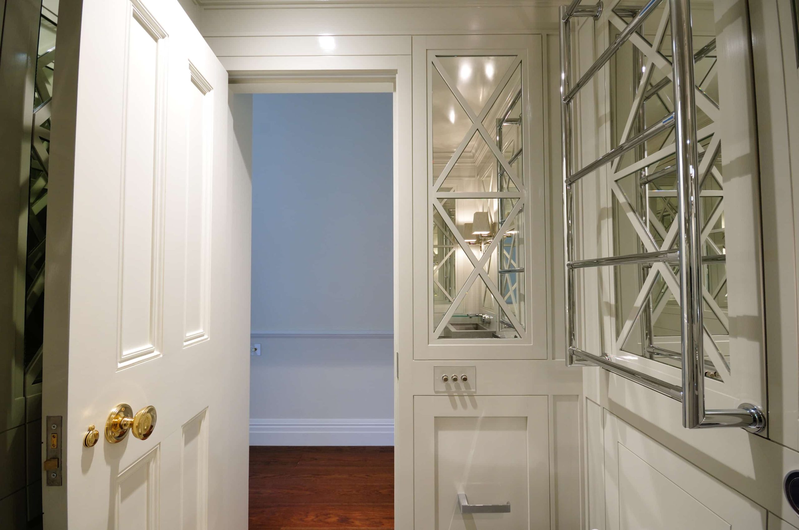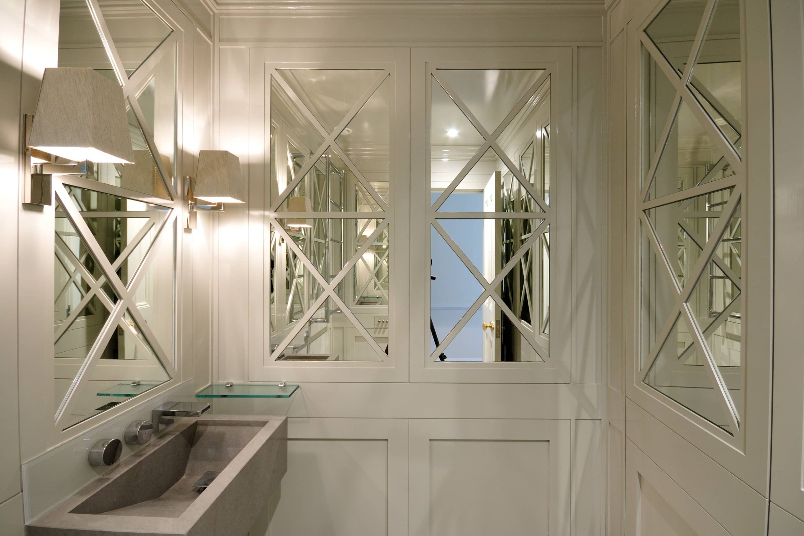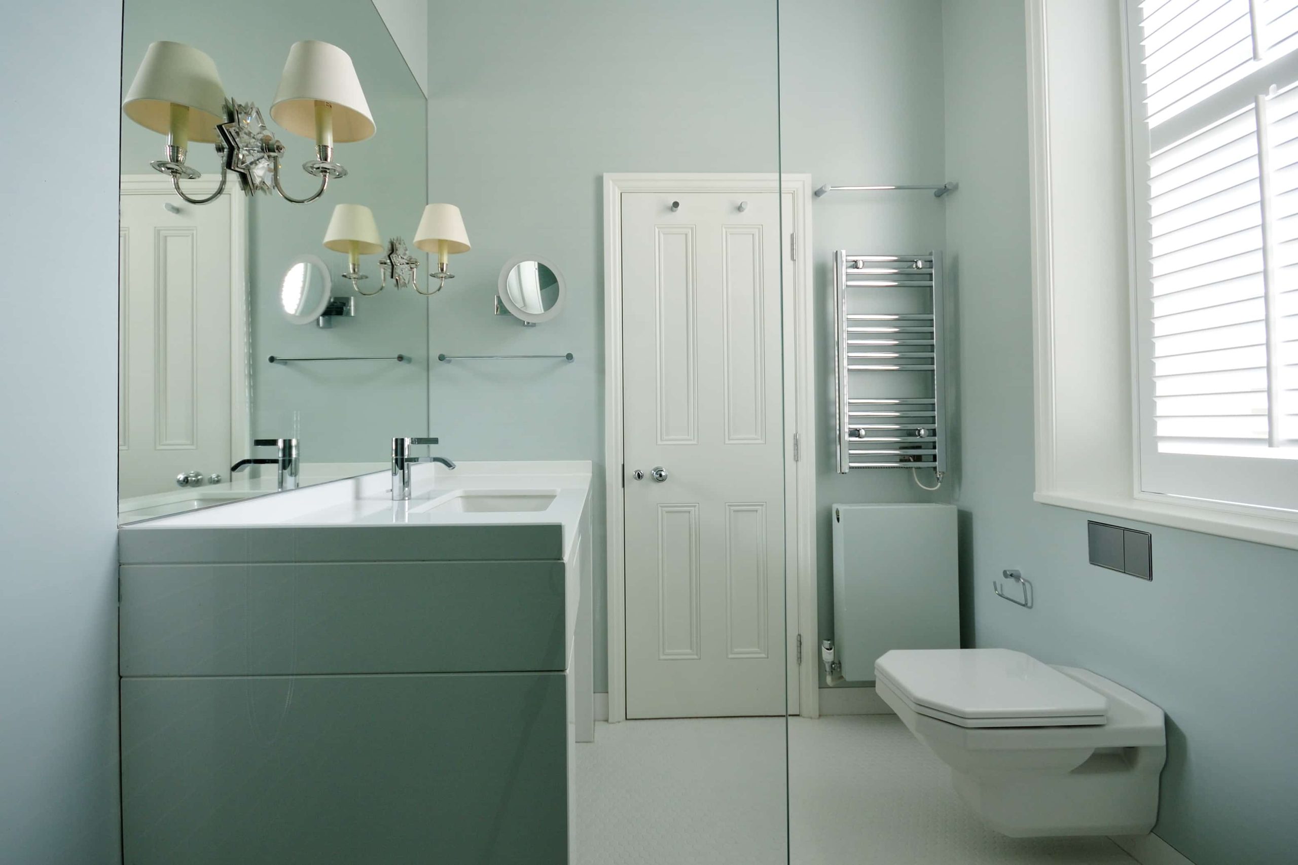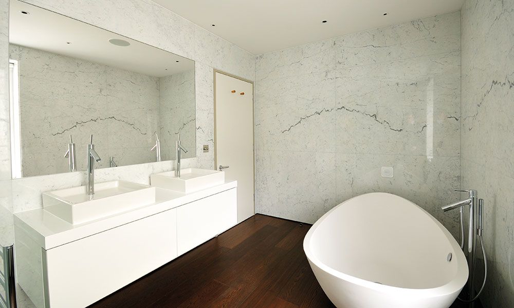 The renovation of a double mews property in the affluent district of Belgravia involved the delivery of a number of specialist finishes to fulfil our client’s vision. A minimalist design dictated no cornices throughout the property, along with precise and accurate edges and joints to marble panelling and timber cabinetry.